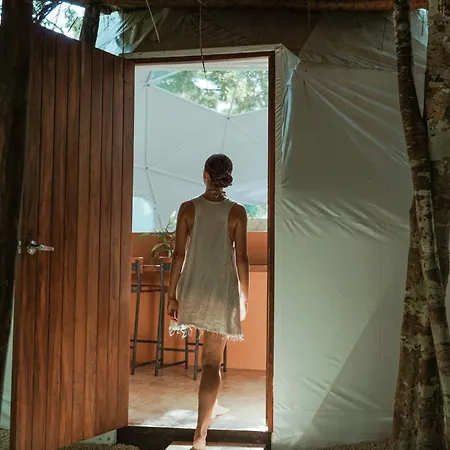 Levará uma caminhada de 15 para chegar do apartamento Jungle Glamping K'U' Kuk ao centro da cidade. - ❓