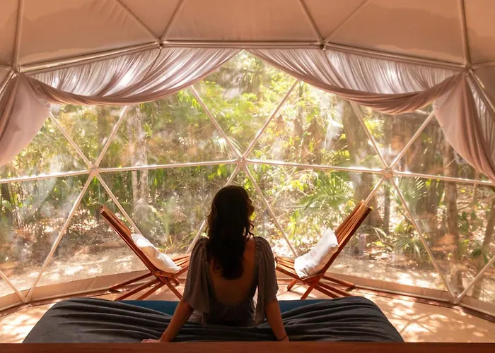 Os hóspedes do apartamento Jungle Glamping K'U' Kuk podem visitar um dos pontos de referência altamente avaliados, Cenotes Sac Actún, localizados à 4.9 km de distância de distância. Outros pontos turísticos que valem a pena visitar são Dos Ojos (a 4 km) bem como ATV's Xtreme (a 1.2 km). - ❓